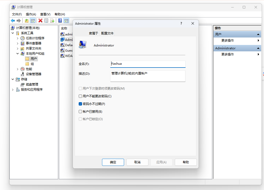 怎么修改Win11用户名更改教程? 周二, 07/08/2025 - 16:34 Win11用户名更改教程1) 1. 右键桌面此电脑,打开“管理”。2) 2. 展开“本地用户和组”,双击打开“用户”。3) 3. 右键想要修改用户名的账户,打开“属性”。4) 4. 在“全名”下输入想要的名称。5) 5. 修改完成后,重启电脑就可以看到账户名称修改成功了。 如果你使用了微软账号登录,那么需要进入微软官网修改。Back to top 评论 Log in or register to post comments.